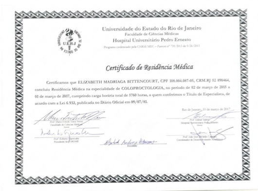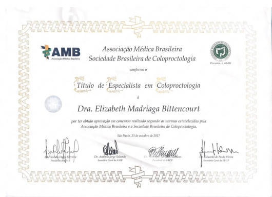 Olá! Sou a Dra. Elizabeth Bittencourt, Coloproctologista.Atuo em várias regiões da cidade do RJ, oferecendo cuidados especializados no tratamento de hemorroidas, fissuras anais, constipação intestinal e outras condições relacionadas à saúde do intestino e região anal. Minha formação inclui graduação em Medicina pela UFF, com Residência em Cirurgia Geral pela Faculdade de Medicina de Petrópolis, especialização em Cirurgia Videolaparoscópica no Hospital Federal Cardoso Fontes, e Coloproctologia pela UERJ. Com paixão e dedicação, meu objetivo é ajudar cada paciente a encontrar alívio para seus sintomas e melhorar sua qualidade de vida, sempre com um olhar humanizado e individualizado.